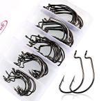 9KMDWLIFEオフセットワームフック釣り針50本バス釣りテキサス・フック高炭素鋼高韧性広い隙間ワームフィッシュフック海水淡水1/0#
