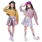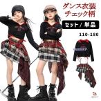 キッズ ダンス衣装 ヒップホップ HIPHOP 子供 トップス シャツ スカート チェック柄 キラキラ チア チアダンス ジャズダンス 体操服 練習着 応援団