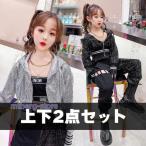 キッズダンス衣装 ヒップホップ スパンコール キラキラ セットアップ 女の子 トップス へそ出し 韓国 かっこいい 黒 練習着 ダンス発表会