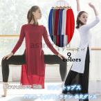 モダン ダンス トップス ゆったり ロングTシャツ 長袖 スリット レディース 大人 シンプル バレエ 演出服 ラテンダンス 体操 社交ダンス ヨガウェア インナー
