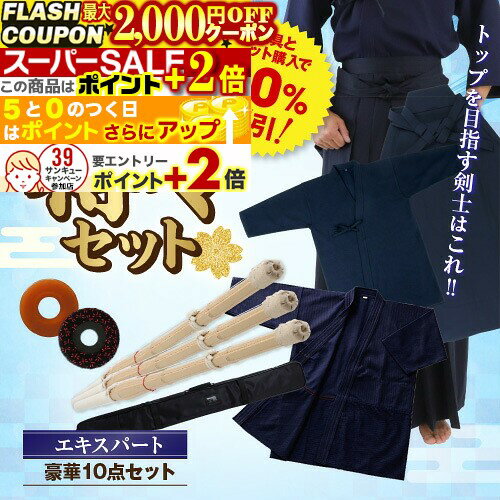 ★2000円OFFクーポン★ポイント+2倍★ 剣道 得々 セット 【エキスパート】 【豪華10点】 【ネーム入れ無料】 【 防具 と購入でさらに10%OFF】 道着 袴 竹刀 竹刀袋 セット 初心者 新入生 フルセット 道着セット 一式