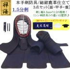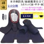 手刺 剣道 防具 セット1.2分総鹿革手刺し「黒耀」【面・甲手・垂れ】3点セット(選べる胴オプション) (●3年保証書・説明書)