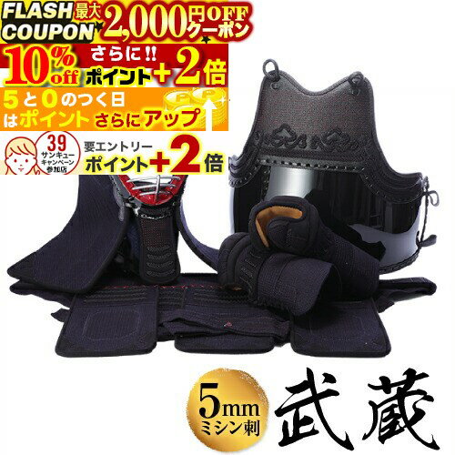 ★2000円OFFクーポン★10%off★P+2倍★ 初心者向け剣道防具セット 【武蔵】 5ミリ刺 面タオルおまけ! 5mmミシン刺 剣道 防具 (面・胴・小手・垂) 剣道具 剣道 防具 セット\店長イチオシ剣道防具/