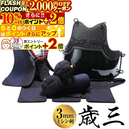 ★2000円OFFクーポン★10%off★P+2倍★ 3mmミシン刺 剣道防具セット 【歳三】 面・胴・甲手・垂 剣道具 \店長イチオシ剣道防具/