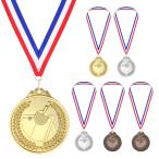 PATIKIL 6.5 cm 金銀銅卓球メダル 6個 卓球表彰メダル リボン付き レッド ホワイト ゲーム スポーツ競技用