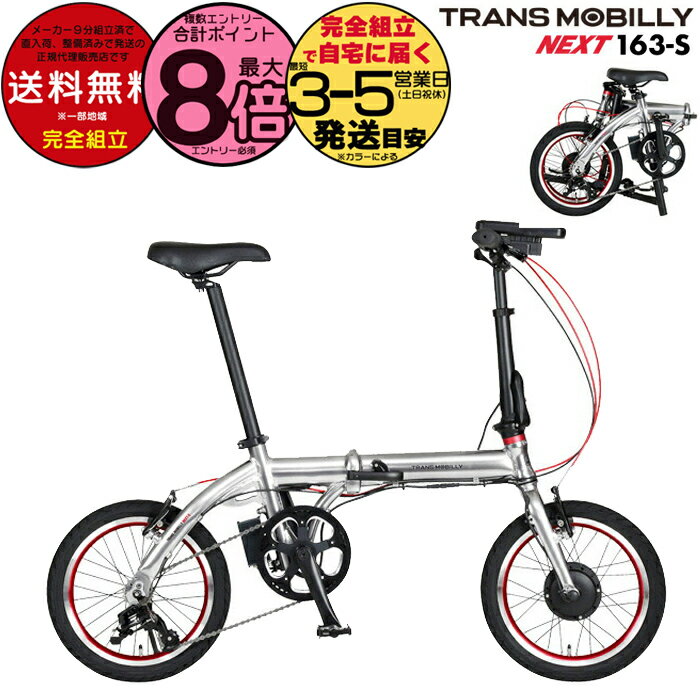 11月30日〜12月1日最大1200円OFFクーポンあり【〜12/25まで●ポイント最大3倍(エントリー要)】【送料無料】トランスモバイリー TRANS MOBILLY ULTRA LIGHT E-BIKE NEXT163-S(ウルトラ ライト ネクスト163-S)16インチ 3段変速 電動自転車 折りたたみ自転車