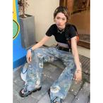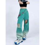 「ベルトなし」?S-XL展開? 花柄 総柄 パンツ ズボン ボトムス ブルー ポケット ジーパン ジーンズ デニム ダンス 衣装 ヒップホップ HIPHOP レデ