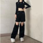 チェーン付 ハーフパンツ 半ズボン ズボン ボトムス パンツ ジャージ ひざ丈 膝上 黒 ブラック 無地 シンプル ゴム ダンス 衣装 ヒップホップ