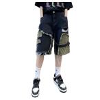 ショートパンツ ショーパン ハーフ ホットパンツ ズボン クラッシュ ダメージ加工 破損加工 切り替え バイカラー 配色 体型カバー デニム 原宿系ファッション 韓