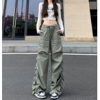 全2色 ?M ̄XL展開?ジャージ 絞り パンツ ズボン ボトムス スウェット ワイド ゴム ブラック 黒 グリーン 無地 ギャザー 太い 太め 大きいサイズ