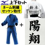 ネーム刺繍+左胸刺繍+ゼッケン取付 ミズノ 柔道着 上下セット 優勝Jr(一重) 帯別売り 柔道 ALL-22JAAA3601