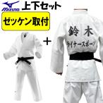 ネーム刺繍+ゼッケン取付 ミズノ 柔道着 上下セット 優勝Jr(二重) 帯別売り 柔道 SZ-22JAAA3501