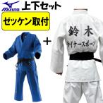 ネーム刺繍+左胸刺繍+ゼッケン取付 ミズノ 柔道着 上下セット 優勝3rd IJF公認 日本製生地 帯別売り 柔道 ALL-22JAAA1801