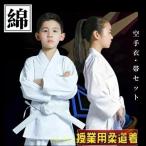 授業用 綿混 上下+帯 柔道着 練習用 空手着 子供 男女兼用 セット 空手 100-180cm 白帯 初心者 ジュニア 合気道 入門者向け 道衣 空