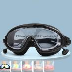 水泳 ゴーグル 曇り止め 収納ケース付 大人 一体化耳栓 UVカット メガネ 水中 クリア UVカット