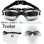 ゴーグル 水泳用 ミラーゴーグル 大人用 耳栓付き フリーサイズ 男女兼用 レディース メンズ 調節可能 曇り止め くもり止め ミラー ミラーレンズ