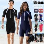 水着 レディース メンズ フィットネス水着 半袖 体型カバー 競泳水着 スイミング 水泳 オールインワン スイムウェア