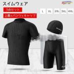 フィットネス水着 上下セット メンズ 3点セット UVカット 競泳 水泳 プール ジム スイミング 競泳水着 練習用 スイムパンツ 半袖 海水浴 男子