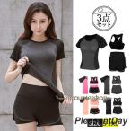 水着 レディース フィットネス水着 セパレート 体型カバー 3点セット 着痩せ 上下セット スポーツ ヨガウェア 水陸両用