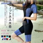 フィットネス水着 レディース メンズ 競泳水着 半袖 オールインワン スイムウェア 水泳ウェア 体型カバー