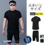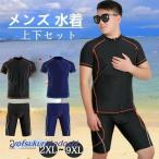 水着 メンズ 上下セット 男性用 パパ 海水浴 プール 半袖 パンツ ブラック ブルー 大きいサイズ 3L 4L 5L 6L 7L 8L 9L 10L