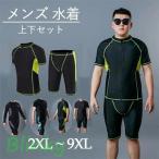 水着 メンズ 上下セット セットアップ 半袖 ラッシュガード ハーフパンツ スポーツ水着 ジム スポーツジム プール 海 大きいサイズ 3L 4L 5L 6L 7L 8L 9L 10L