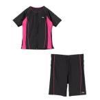 配色袖付フルジップセパレート水着 大寸【返品不可商品】 (ブラック×ピンク)