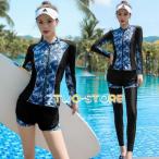 フィットネス水着 レディース セパレート 女性 大きいサイズ 体型カバー 水着 ラッシュガード 長袖 3点セット 黒 露出控えめ 日焼け防止 4L 5L 6L 7L 8L