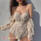 レース 水着 ビキニ レディース 体型カバー ワンピース オールインワン 大きいサイズ タンキニ 白 ハーフスパッツ 吊りスカート 20代 30代 かわいい