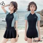 フィットネス水着 レディース スカート セット 半袖 セパレート 水着 体型カバー フィットネス 女性 前ジッパー 競泳水着 水泳 スイムウェア