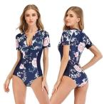 フィットネス水着 ビキニ ワンピース レディース 半袖 前開き おしゃれ 日焼け防止 水陸両用 体型カバー 水泳 プール 海 ビーチ マリンスポーツ サマー