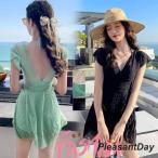 水着レディース ワンピース 体型カバー 女性 水着 花柄 スカート 露出控えめ スイムウェア オールインワン 海水浴 プール 水泳 おしゃれ 可愛い 韓国