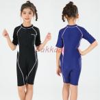 スクール水着 女の子 オールインワン キッズ 水着 半袖 ロンパース つなぎ ワンピース フィットネス水着 女児 UVカット 日焼け防止 スイミング