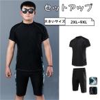 水着 メンズ 半袖 水泳着 上下セット 大きいサイズあり 水陸両用 伸縮性 速乾 セットアップ フィットネス水着 海パン ショートパンツ 旅行 父の日