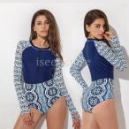 水着 ワンピース フィットネス水着 レディース 花柄 長袖 オールインワン ラッシュガード 体型カバー スポーツ水着 サーフィン スイムウェア