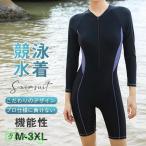 フィットネス水着 レディース オールインワン 競泳水着 温泉 スイムウェア フィットネス 水着 女性 長袖 体型カバー 練習用 短パン ファスナー