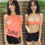 水着 競泳水着 レディース 水着 セパレーツタイプ ジム用 3点セット ヨガ トレーニング スポーツ セパレート 半袖 ファッション水着