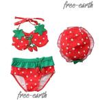 子供水着 70~120cm 3点セット イチゴ付き 苺 いちご フリル キャップ付き セパレート タンキニ ジュニア ラッシュガード 女の子 キッズ 子ども用 スクール水着