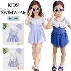 オールインワン 水着 キッズ 幼稚園 ガールズ 女児 子ども用 水着 小学生 女の子 フリル 可愛い 韓国 2点セット 水泳帽子 子供 格子柄 紫 青 みずぎ かわいい ス