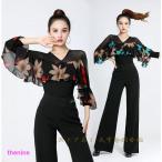 社交ダンス トップス ラテンドレス モダンドレス ロングスカート ダンスウエア トップス 競技 デモ ダンス衣装 ワンピース 社交ダンスドレス