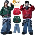 キッズ ダンス衣装 発表会 カジュアル ダンスウエア 子供服 ストリート スウェット グリーン トップス フード付き 長袖 ジャケット 迷彩パンツ 男の子 女の子 ヒ