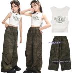 キッズダンス衣装 HIPHOP セットアップ ヒップホップ 子供 トップス へそ出し 無袖 パンツ 長ズボン 女の子 ジャズダンス 練習着 発表会 チアガール