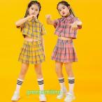 キッズ ダンス衣装 ジャズダンス ガールズ 女の子 男の子 ヒップホップ 韓国風 HIPHOP チェック柄 スカート チアガール チア セットアップ 練習着