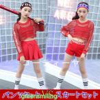 キッズダンス衣装 へそ出し ジャズダンス セットアップ ヒップホップ トップス スカート チアガール 韓国 かっこいい 派手 ダンス衣装 女の子 発表会 練習着