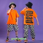 キッズ ダンス衣装 ヒップホップ 子供服 HIPHOP ズボン 半袖 セット 男の子 女の子 ジャズダンス 発表会 練習着 ステージ衣装 チェック柄上下2点セット