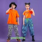 キッズ ダンス衣装 トップス パンツ セットアップ オレンジ シマウマ hiphop ヒップホップ ジャズダンス へそ出し 韓国 演奏会 子供服 練習着 チア チアガール