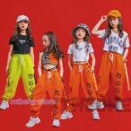 キッズ ダンス衣装 ガールズ ジャズダンス 夏 オレンジ セットアップ 黒白 Tシャツ 韓国 HIPHOP ヒップホップ ステージ衣装 練習着 へそ出し 応援団