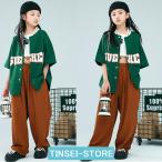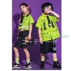 キッズダンス衣装 韓国子供服 ステージ衣装 セットアップ HIPHOP ヒップホップ 半袖 シャツ ジャズダンスパフォーマンスセット ダンスウェア 練習着 応援団