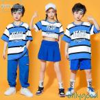キッズ ダンス衣装 ヒップホップ 男の子 女の子 子供 ガールズ キッズダンス衣装 チアガール ステージ衣装 ブルー パンツ 演出服 練習着