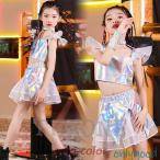 ダンス 衣装 キッズ ジャズダンス スカート ベスト 銀 ジュニア ヒップホップ セットアップ ガールズ 女の子 チア チアガール 応援団